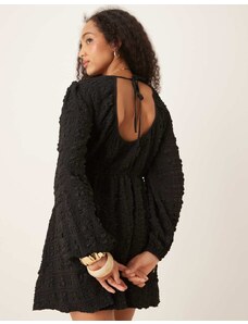 Gina Tricot textured mini dress with open tie back and volume sleeves in black