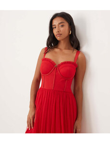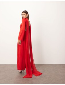ARRANGE structured crepe long sleeve maxi dress with chiffon overlay in red
