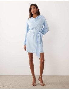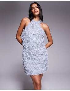 Kaiia exclusive tailored halter neck asymmetric ruffle tiered mini dress in soft blue