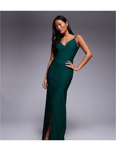 Vesper Petite bengaline cami v neck low back maxi dress in forest green