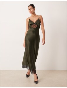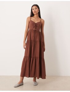 The Frolic exclusive satin lace trim plunge tie detail maxi dress in chocolate-Brown