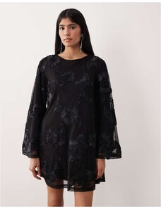 Gina Tricot long wide sleeve sleeve flowy mini dress with open back in black