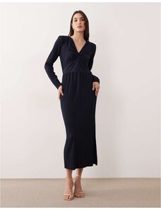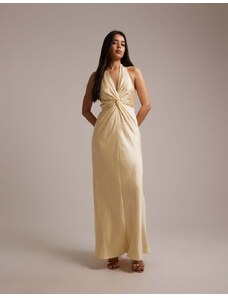 Six Stories Bridesmaids satin plunge neck knot detail maxi dress in lemon-Yellow
