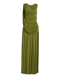 Wanderdoll Storm sculpting shoulder pad detail satin drape waist mini dress in forest green