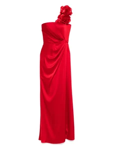 SILK LOVE & LACE Margot long-sleeve maxi dress - Red