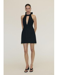ZARA HALTER NECK SHORT DRESS WITH BOW Black XS