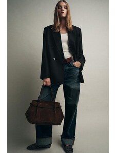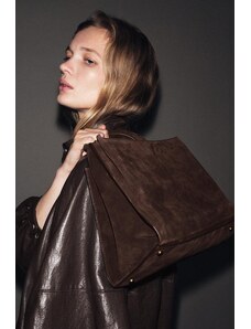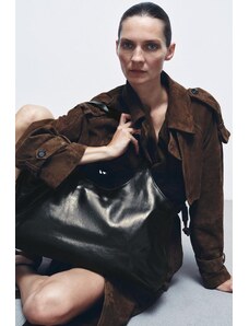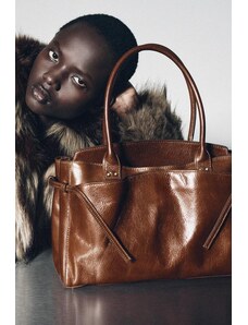 ZARA LIMITED EDITION LEATHER MAXI SHOPPER BAG Chocolate ONE SIZE ONLY