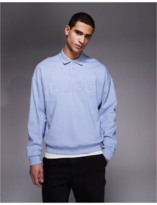 HUGO Red dimolox oversized rugby polo in light blue with tonal logo