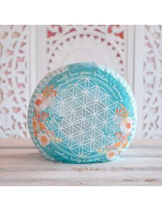 Potisk mandaly s květem života v kombinaci s lotosy navíc dělá z polštáře designový kousek, který prozáří nejen Vás, ale také Váš interiér.