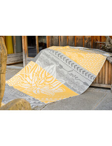 The Spirit of OM deka z bio bavlny žluto-šedá - ornament lotosový květ - 140x200 cm
