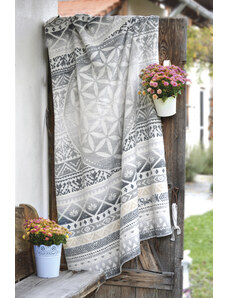 The Spirit of OM deka z bio bavlny - šedá - ornament květ života - 140x200 cm