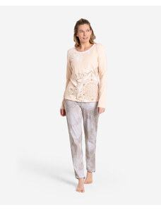 The Spirit of OM dámské pyžamo komplet - kalhoty s tričkem z bio bavlny - meruňkové - M