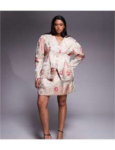ASOS LUXE Curve co-ord jacquard mini skirt in white floral-Multi