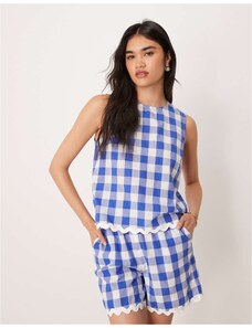 YAS woven gingham top co-ord with scallop trims in blue and white
