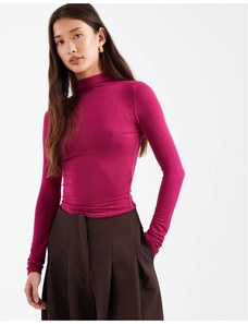 Gina Tricot crinkle long sleeve wrap blouse with tie detail in black