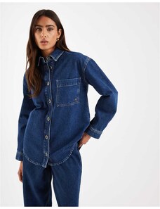 4th & Reckless button through structured denim shirt co-ord in dark wash-Blue