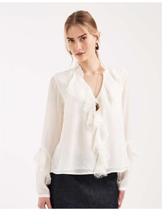 Noughts & Kisses chiffon extreme ruffle blouse co-ord in cream-Neutral