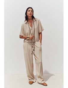 ZARA RELAXED FIT LINEN SHIRT Light beige S