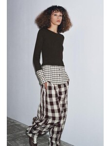 ZARA CONTRAST CHECK SHIRT Brown S