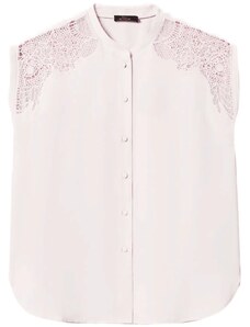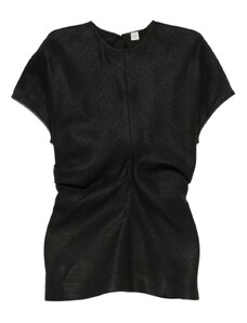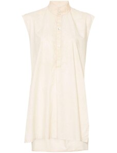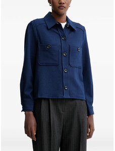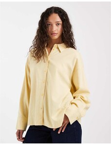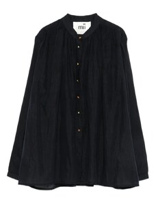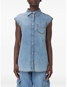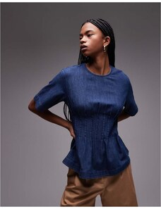 ARKET lightweight denim blouse with pleated bodice in mid wash blue