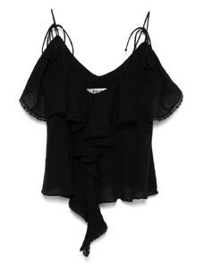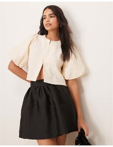 ARRANGE cotton cutwork embroidered short sleeve tie front shirt co-ord in black