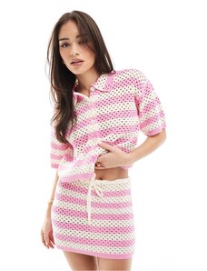 The Frolic exclusive crochet button through cropped shirt co-ord in pink and cream stripe