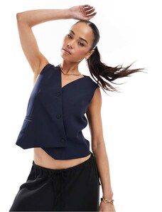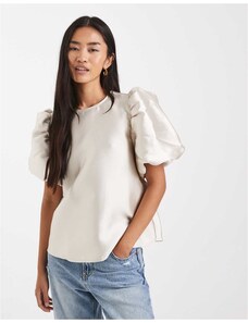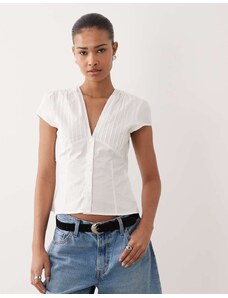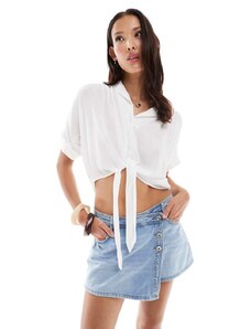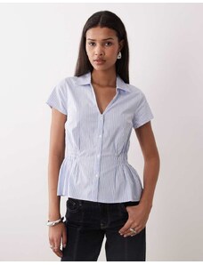 Gina Tricot cotton rich cinched waist crinkle blouse in blue and white stripe-Multi