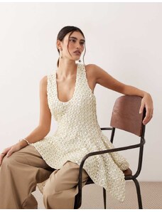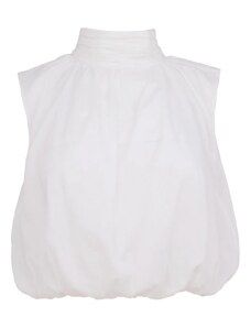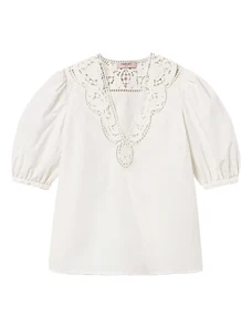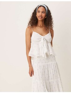 Noughts & Kisses cotton broderie trim high neck ruffle shirt co-ord in white