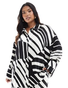 4th & Reckless Plus satin wide cuff shirt co-ord in black and white print