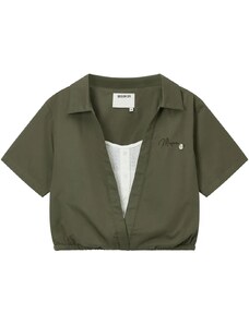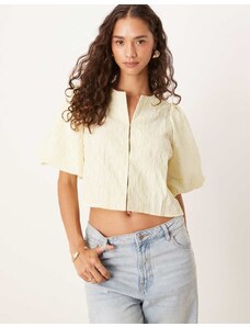 Brava Fabrics Bubble Cropped Blouse Light Green - Organic Cotton Fun Short Sleeve Shirt