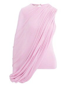 ARRANGE Curve premium mesh abstract floral printed high neck long sleeve top in pink-Multi