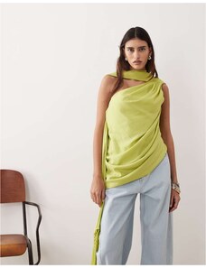 4th & Reckless lightweight linen look pocket detail beach shirt co-ord in cream & sage stripe-Green