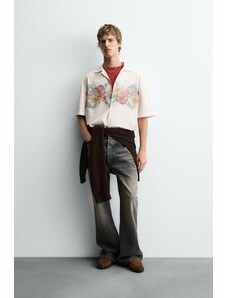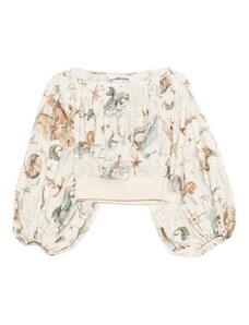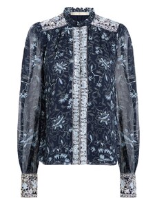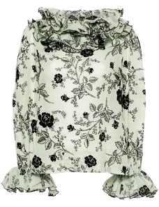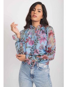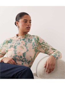 ARRANGE Curve premium mesh abstract floral printed high neck long sleeve top in pink-Multi