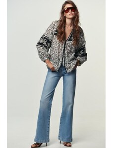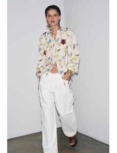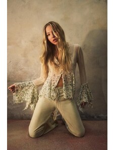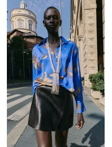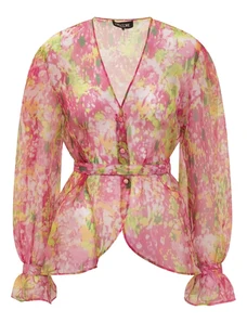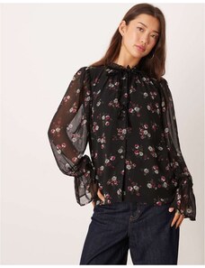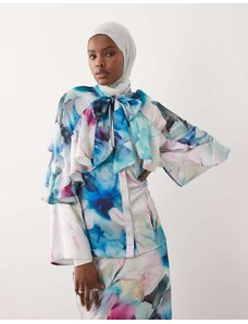 IYAL satin long sleeved bow detail blouse co-ord watercolour floral print-Multi