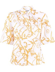 Brava Fabrics Asis Percales Tiger Aloha Blouse White - 80% Sustainable viscose 20% linen