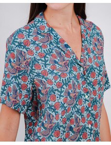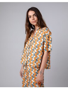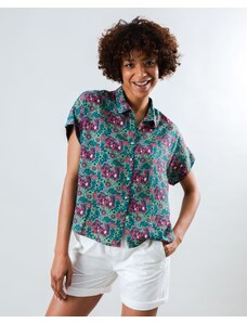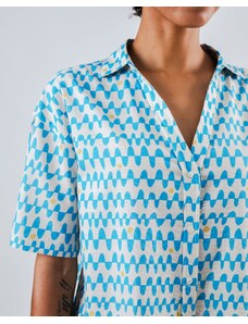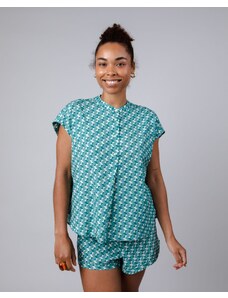 Brava Fabrics Big Tiles Oversize Cropped Blouse Topaz - 78% Organic Cotton 22% Sustainable viscose