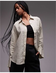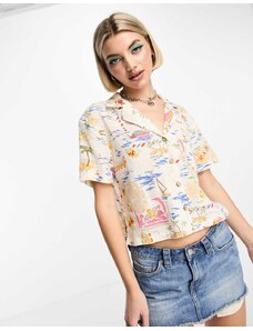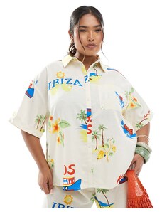 Pieces Plus Pieces Curve boxy fit shirt co-ord in cream based conversational print-Yellow