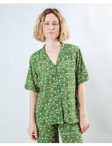 Peanuts Flower Garden Aloha Blouse Green β Sustainable Viscose Hawaiian Shirt | Brava Fabrics