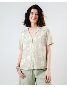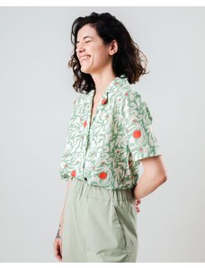Ola de Calor Aloha Blouse Light Green β 100% Organic Cotton Short Sleeve Shirt | Brava Fabrics