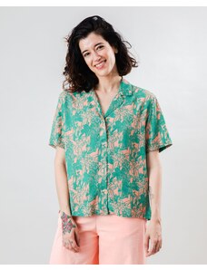 Asis Percales Tigris Batwing Blouse Light Green β Sustainable Viscose Hawaiian Short Sleeve Shirt | Brava Fabrics