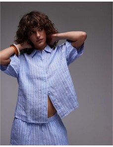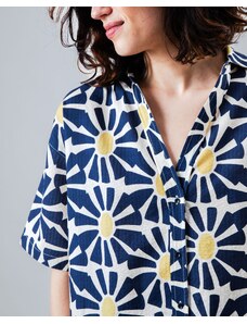 Sunset Cropped Blouse Blue β Organic Cotton & Sustainable Viscose Short Sleeve Hawaiian Shirt | Brava Fabrics