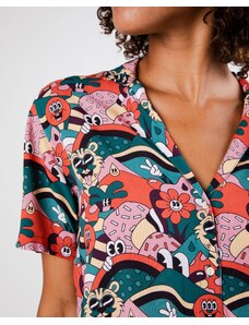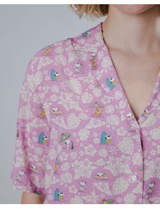Peanuts Woodstock Aloha Blouse Rose β Sustainable Viscose Short Sleeve Hawaiian Shirt | Brava Fabrics