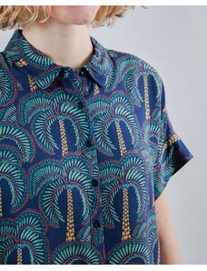 Borneo Batwing Blouse Navy β Sustainable Viscose Hawaiian Short Sleeve Shirt | Brava Fabrics