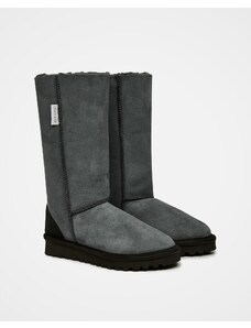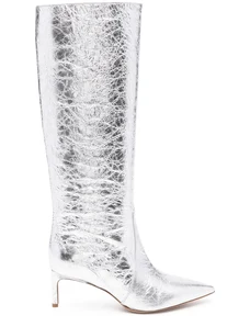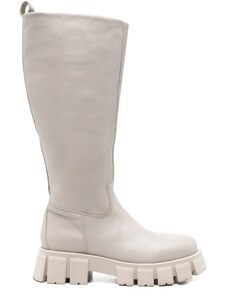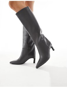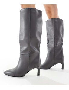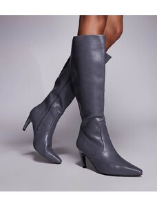 SEQWL Wide Fit Benz knee high kitten heel boots in grey PU-Neutral