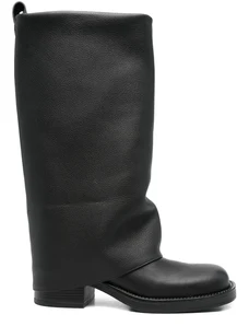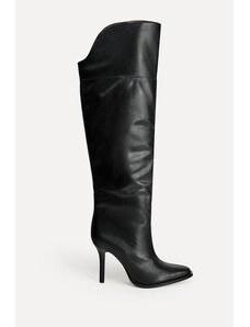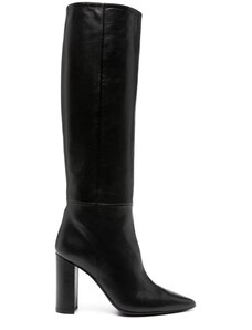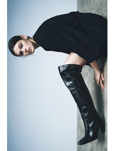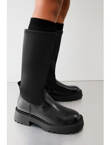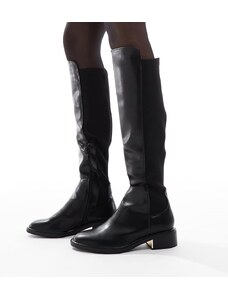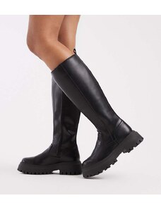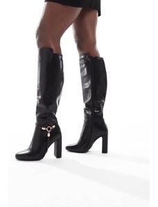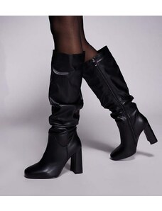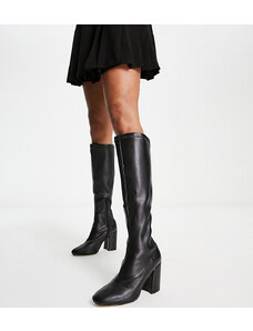 Simmi Wide Fit Simmi London Hanzel Wide Fit ruched block heeled knee boots in black