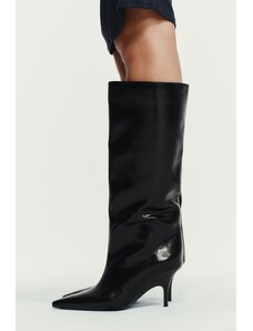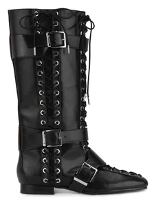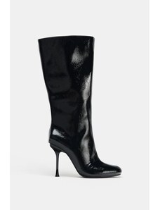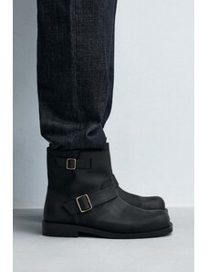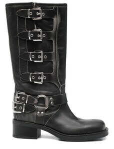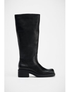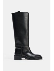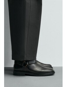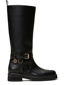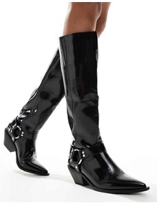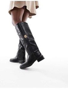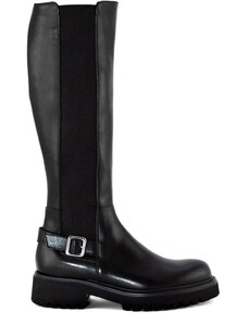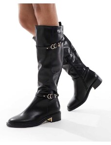 SEQWL Wide Fit Latte buckle detail refined riding boots in black