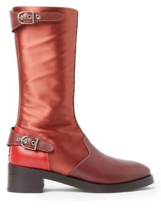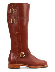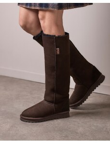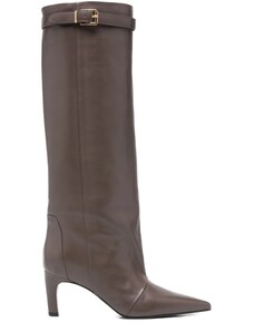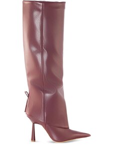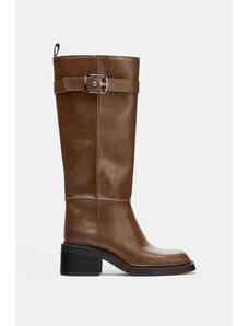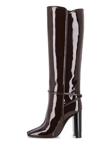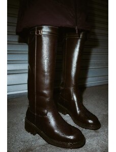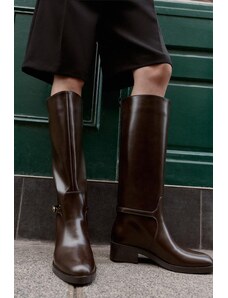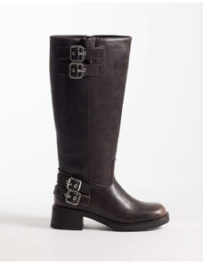 SEQWL Wide Fit Boost buckle detail knee boots in chocolate-Brown
