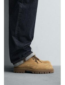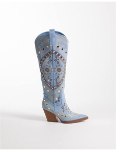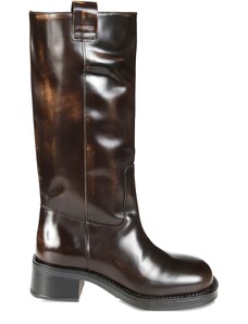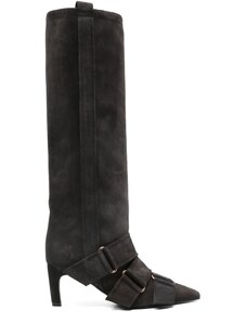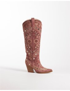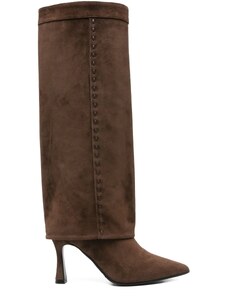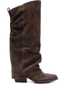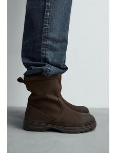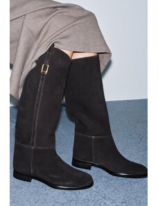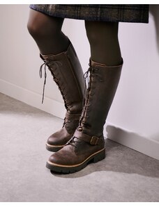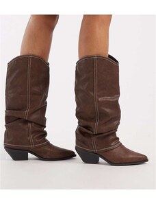 Schuh Doria square toe chunky riding boots in nubuck suede-Brown