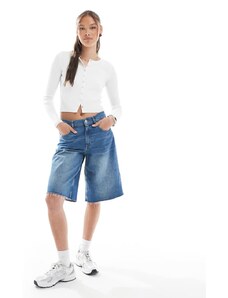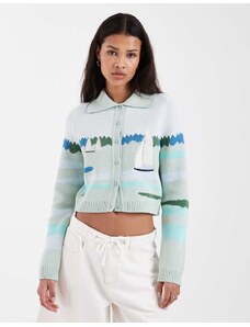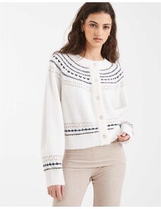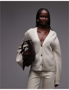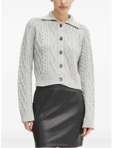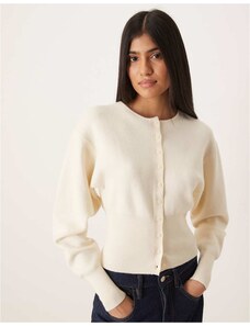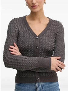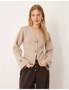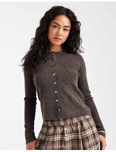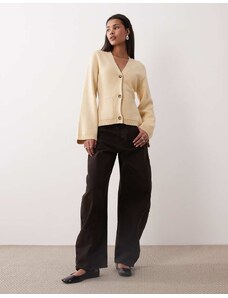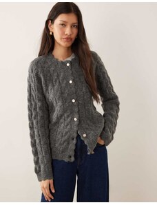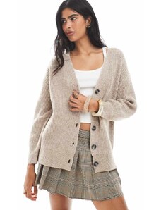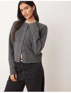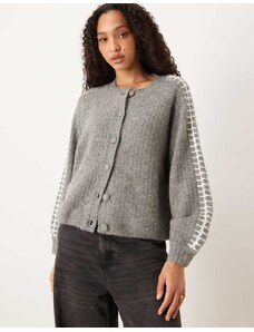 YAS contrast stitch detail soft cardigan in medium grey melange