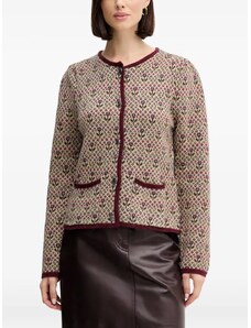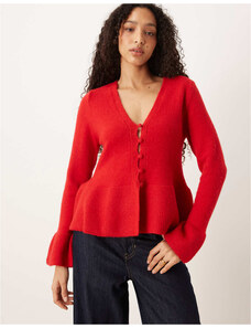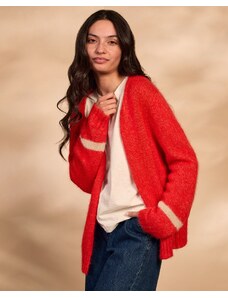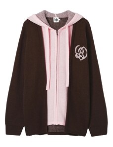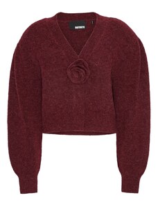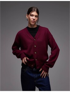 CAT WWR merino wool blend loose fit knit cardigan with back logo in burgundy-Red